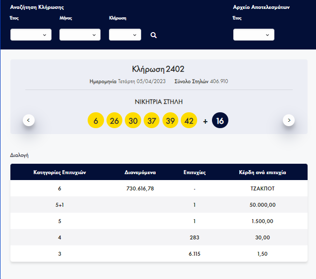 Οι έξι τυχεροί αριθμοί της κλήρωσης 2402 είναι