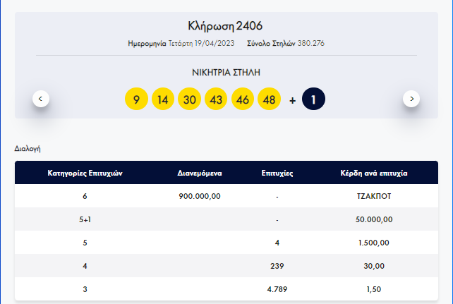 Οι έξι τυχεροί αριθμοί της κλήρωσης 2406 είναι
