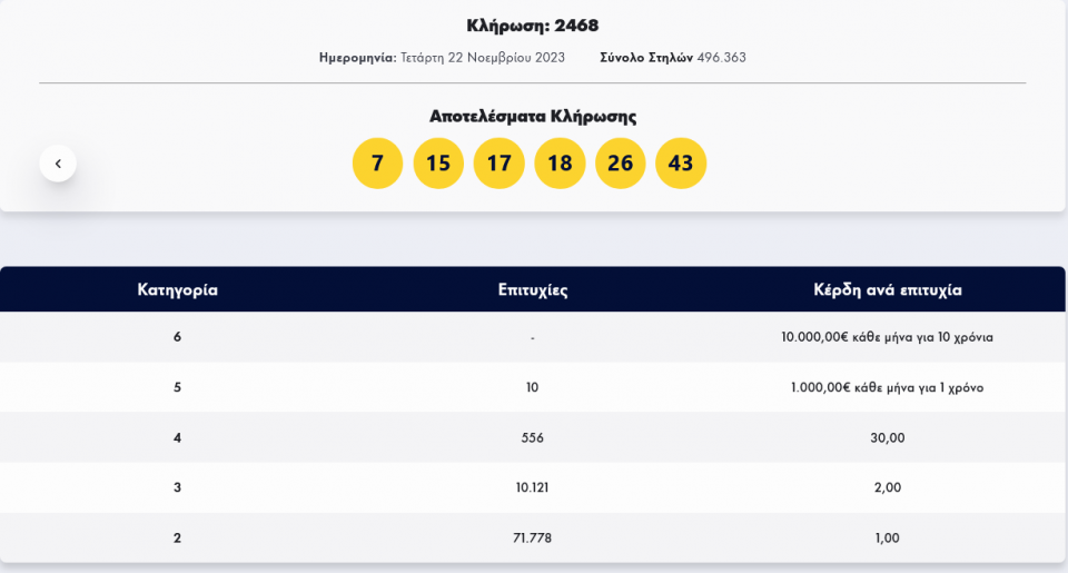 ΛΟΤΤΟ-Κλήρωση 2468 - Τετάρτη 22/11/2023: Αυτοί είναι οι τυχεροί αριθμοί