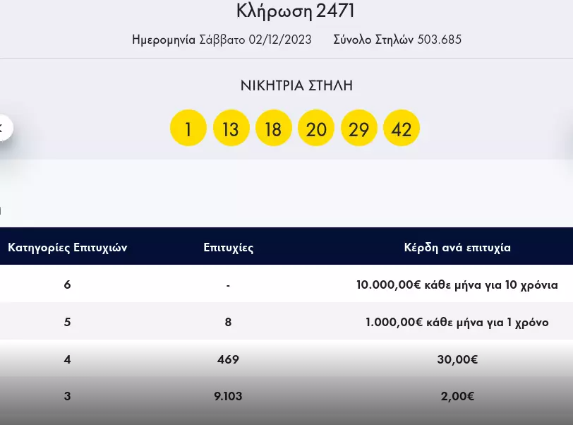 Οι έξι τυχεροί αριθμοί της κλήρωσης 2471 είναι: 1,3,18,20,29,42