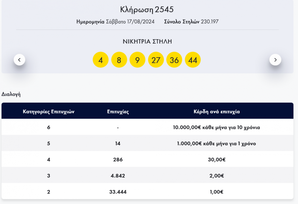 Κλήρωση ΛΟΤΤΟ αριθμός 2545, σήμερα Σάββατο 17/8/2024.