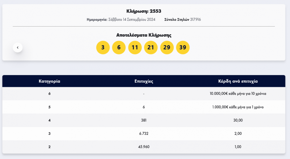 ΛΟΤΤΟ-Κλήρωση 2553 - Σάββατο 14/9/2024: Δείτε τους τυχερούς αριθμούς