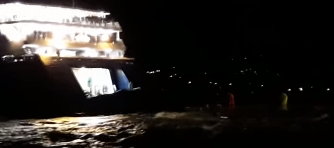 «Μάχη» με τα κύματα έδωσε ο καπετάνιος το βράδυ της Τετάρτης (17/1), στο λιμάνι της Πάρου , όπου... πάλεψε για να δέσει το πλοίο.