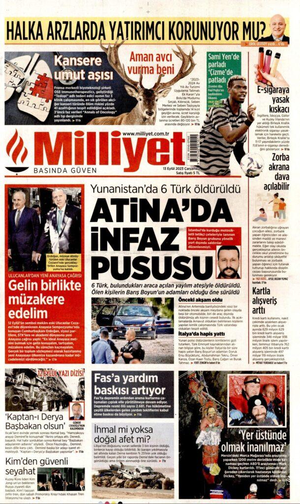 Η είδηση είναι σήμερα στα πρωτοσέλιδα των εφημερίδων Hurriyet και Millyet, ενώ ευρεία αναφορά κάνει και το CNN Turk.