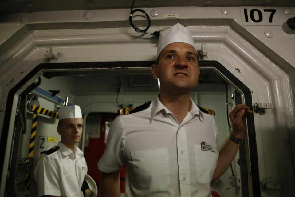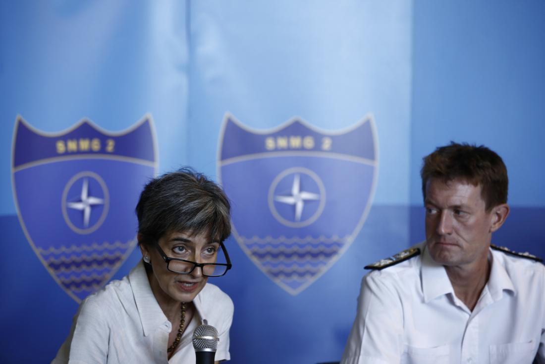 Ο αρχιπλοίαρχος του σκάφους Τζέιμς Μόρλεϊ, στην κοινή συνέντευξη με την πρέσβη, μίλησε για την υψηλή ετοιμότητα στην οποία βρίσκεται η ναυτική δύναμη του ΝΑΤΟ προκειμένου να αντιμετωπίσει στρατιωτικές και ανθρωπιστικές προκλήσεις και ότι σκοπός του Task Group είναι να αποτρέψει την παράνομη μετανάστευση, με τη συνεργασία της ελληνικής και της τουρκικής ακτοφυλακής καθώς και της Frontex.
