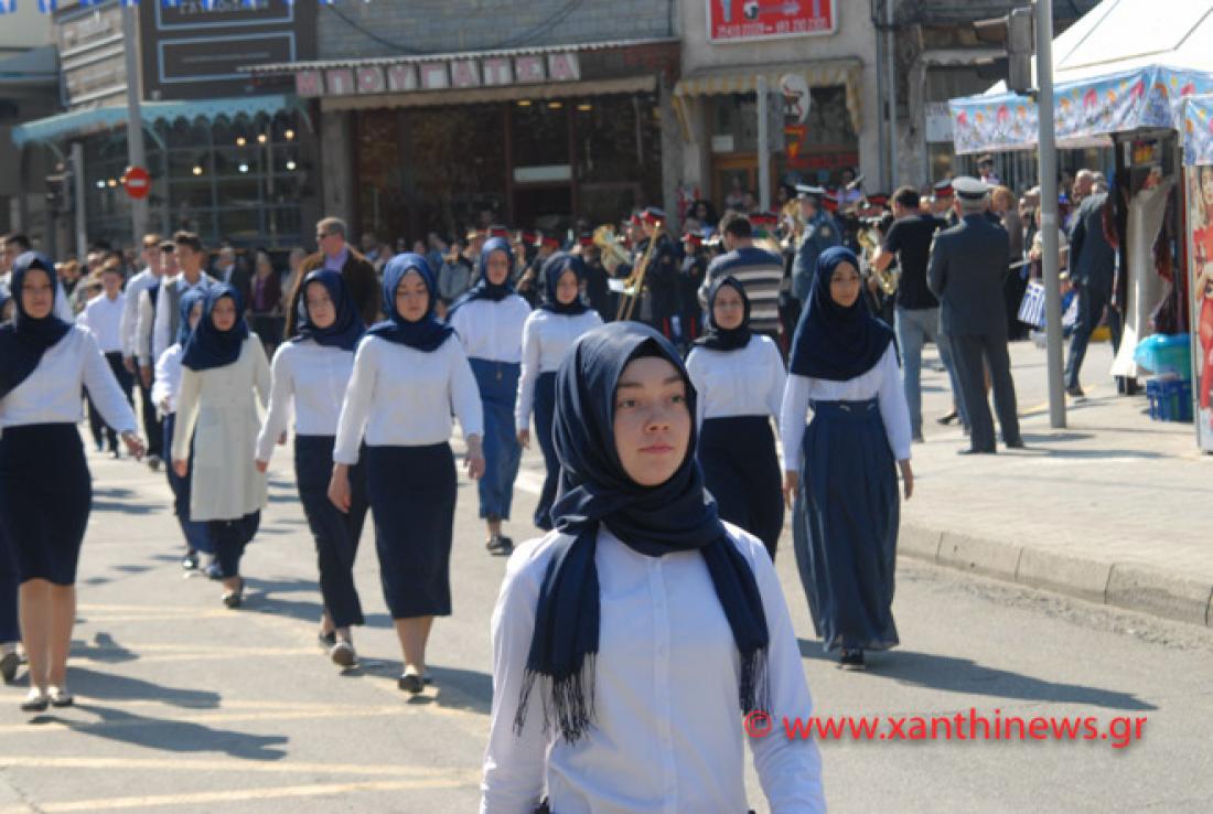 Ένα πρωτοφανές γεγονός έλαβε χώρα στην παρέλαση για τη γιορτή των Ελευθερίων της Ξάνθης όπου για πρώτη φορά όλες οι μαθήτριες ενός σχολείου παρέλασαν φορώντας μαντίλα ! Οι μαθήτριες προκάλεσαν με την εμφάνιση τους, πλήθος συζητήσεων μετά την παρέλαση.