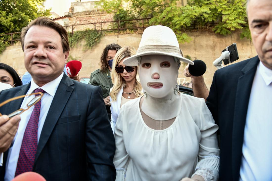 Η παθούσα φορούσε καπέλο και μάσκα και περπατούσε αργά, έχοντας δίπλα της τους συνηγόρους της Απόστολο Λύτρα και Νίκο Αλεξανδρή και την μητέρα της, δείχνοντας να μην ενοχλείται από την έντονη παρουσία των μέσων ενημέρωσης έξω από το κτίριο.