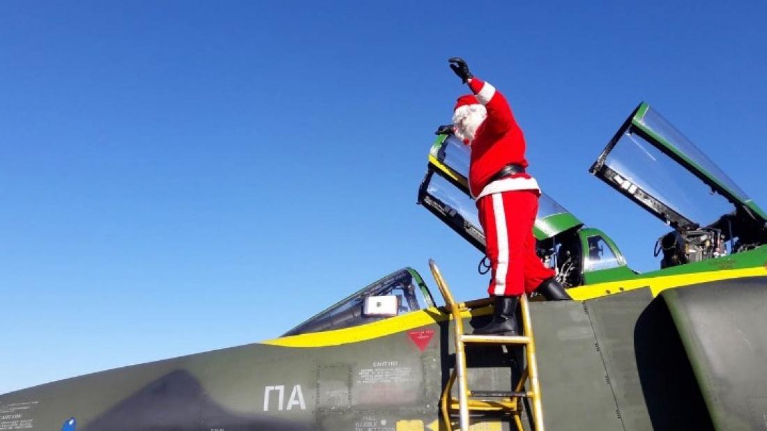 Με πολεμικό αεροσκάφος έφτασε ο Άγιος Βασίλης στη Λάρισα