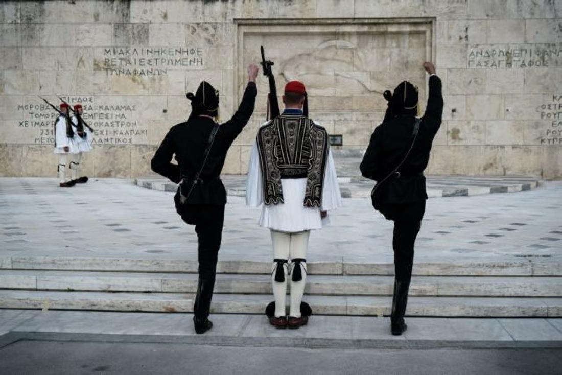 Νωρίτερα, όπως κάθε χρόνο και παρουσία μελών του κοινοβουλίου, έγινε η καθιερωμένη πλέον αλλαγή της Προεδρικής Φρουράς, όταν οι Τσολιάδες αντικαταστάθηκαν με Πόντιους Εύζωνες, σε ένα συγκινητικό τελετουργικό που προκάλεσε τα χειροκροτήματα των Ελλήνων, αλλά και των ξένων επισκεπτών.