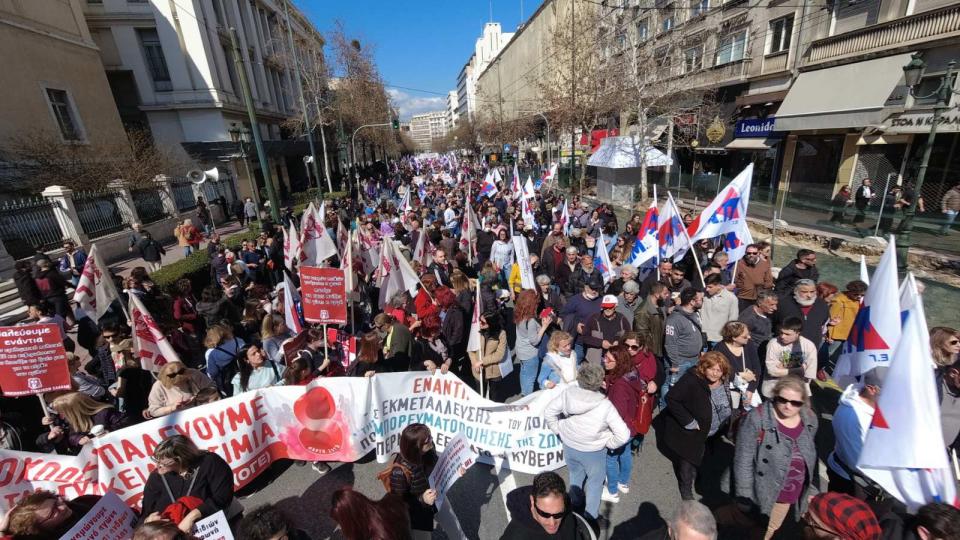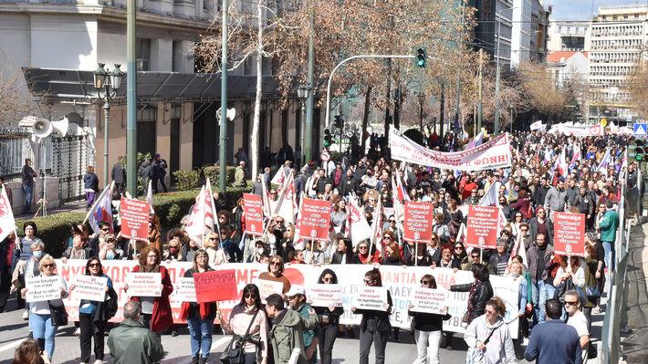 Στο κέντρο της Αθήνας πραγματοποιείται μαζικό συλλαλητήριο της ΑΔΕΔΥ, εργατικών σωματείων, φοιτητικών συλλόγων και οργανώσεων της Αριστεράς, στο πλαίσιο 24ωρης πανελλαδικής πανδημοσιοϋπαλληλικής απεργίας που έχει κηρυχθεί για σήμερα. Με κεντρικό σύνθημα «8 Μάρτη παγκόσμια ημέρα της γυναίκας. Οι ζωές μας μετράνε. Να μπει τέρμα στην πολιτική των ιδιωτικοποιήσεων», οι διαδηλωτές και οι διαδηλώτριες θα πραγματοποιήσουν πορεία μέχρι το Σύνταγμα.