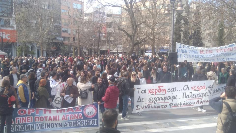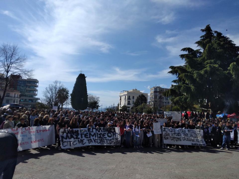 Χιλιάδες ξεχύθηκαν στους δρόμους με την οργή για την τραγωδία στα Τέμπη να ξεχειλίζει. Εργαζόμενοι, μαθητές και φοιτητές ένωσαν τις φωνές και τα συνθήματα τους σε μια απέραντη πορεία που κατέληξε στο σιδηροδρομικό σταθμό της πόλης.