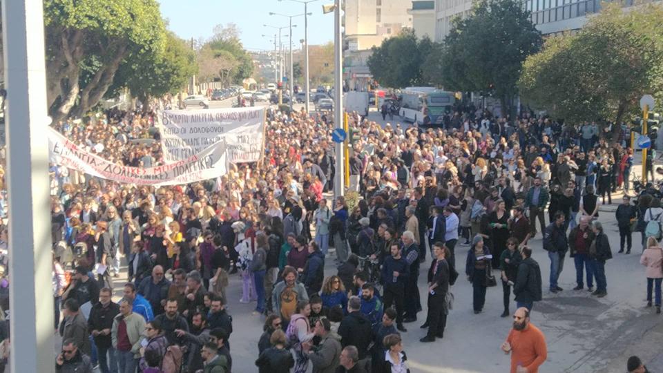 Μεγάλη η συμμετοχή των πολιτών στην απεργία και στα Χανιά. Μαθητές, εκπαιδευτικοί, γονείς, εκπρόσωποι σωματείων χιλιάδες πολίτες ανταποκρίθηκαν στο κάλεσμα και συγκεντρώθηκαν το πρωί στην πλατεία της Δημοτικής Αγοράς με κύριο αίτημα να αποδοθούν όλες οι ευθύνες για το σιδηροδρομικό δυστύχημα στα Τέμπη.