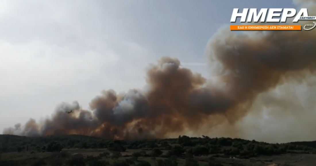 Μεγάλη πυρκαγιά έχει ξεσπάσει στη Ζάκυνθο και συγκεκριμένα στην περιοχή Βολίμες.