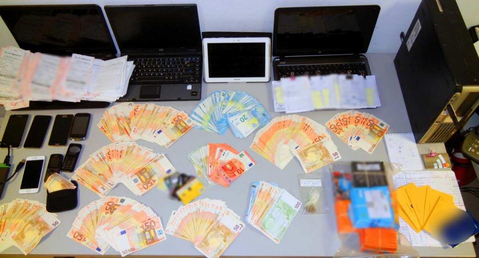 Από αυτά προκύπτει η νομιμοποίηση εσόδων από παράνομη δραστηριότητα, μικροποσότητα αποξηραμένης κάνναβης, πληθώρα κινητών τηλεφώνων και πακέτων συσκευασιών καρτοκινητών τηλεφωνικών συνδέσεων και μεγάλος αριθμός πειστηρίων που αποδεικνύουν την εγκληματική δράση των μελών της ομάδας, χειρόγραφες σημειώσεις κ.α.