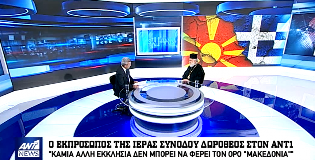 Μιλώντας στο κεντρικό δελτίο ειδήσεων του ΑΝΤ1 και τον Νίκο Χατζηνικολάου, ο Μητροπολίτης Δωρόθεος τόνισε, μεταξύ άλλων, ότι "η Εκκλησία σέβεται και γνωρίζει τους χωριστούς ρόλους της απέναντι στην Πολιτεία, δεν κάνει πολιτική ούτε χαράσσει γραμμή. Είναι γνωστό ότι η σχισματική Εκκλησία των Σκοπίων θέλει να ονομάζεται "Εκκλησία των Σκοπίων".