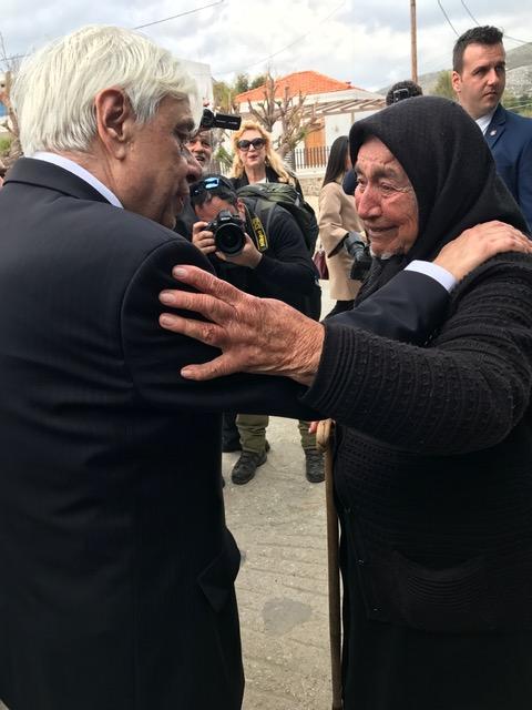 Ο ΠτΔ χαιρετά μια γριούλα που ζει σχεδόν όλη της τη ζωή (περίπου 100 ετών) στην Ψέριμο