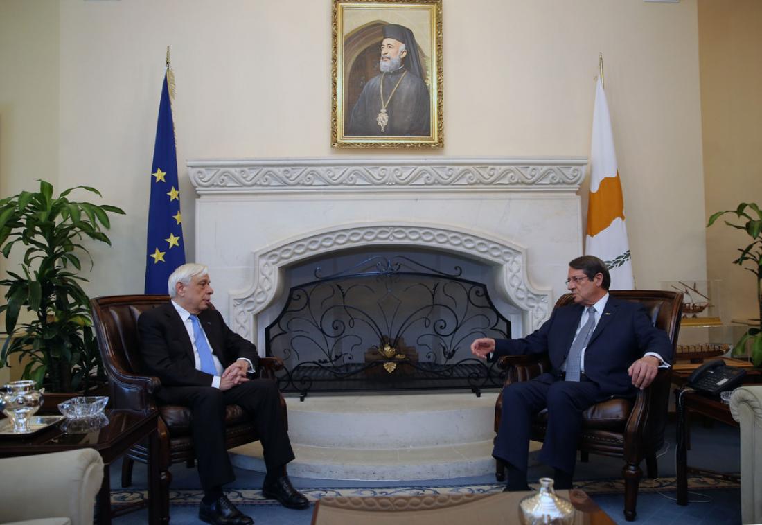 Την κοινή θέση Ελλάδας και Κύπρου για λύση χωρίς εγγυήσεις και τουρκικά στρατεύματα επανέλαβαν ο Πρόεδρος της Δημοκρατίας Προκόπης Παυλόπουλος και ο Κύπριος πρόεδρος Νίκος Αναστασιάδης μετά από συνάντηση που είχαν στη Λευκωσία.