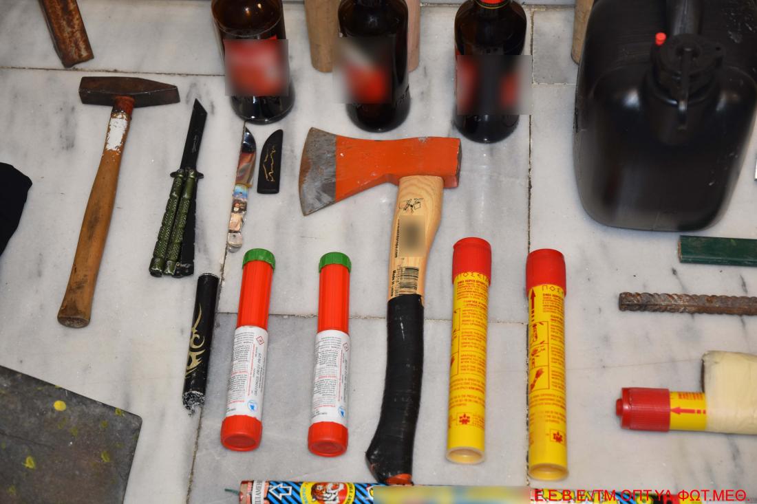 Συγκεκριμένα, σε δύο συνδέσμους του ΠΑΟΚ και σε έναν του 'Αρη σε περιοχές του Ευόσμου και της Σταυρούπολης, εντόπισαν και κατέσχεσαν αυτοσχέδιους εμπρηστικούς μηχανισμούς, μπιτόνια με βενζίνη και γυάλινες φιάλες, πολλά ξύλινα και μεταλλικά αντικείμενα, μαχαίρια, τσεκούρι, σφυρί και φτυάρι, πυροτεχνικές κατασκευές κ.α..
