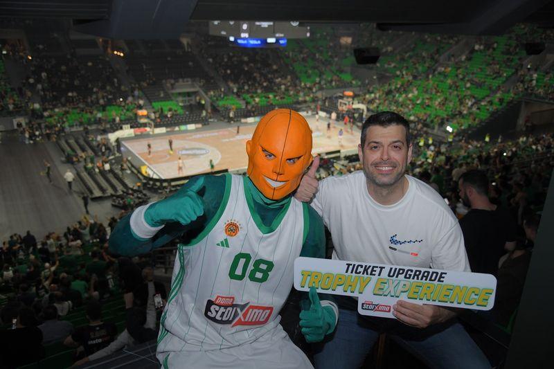 Στους δύο πρώτους αγώνες των playoffs, που έγιναν στο ΟΑΚΑ, οι φίλοι της ομάδας έζησαν μια μοναδική εμπειρία. Το ΠΑΜΕ ΣΤΟΙΧΗΜΑ, Μέγας Χορηγός της ΚΑΕ Παναθηναϊκός ΑΚΤΟR, ήταν εκεί με το αποκλειστικό Trophy Experience, δίνοντας στους φιλάθλους την ευκαιρία να δουν από κοντά το ιστορικό 7ο τρόπαιο της Euroleague και να φωτογραφηθούν μαζί του. Ένας από αυτούς μάλιστα, αναδείχθηκε σε μεγάλο τυχερό και απόλαυσε μια VIP εμπειρία που θα του μείνει αξέχαστη. Από τον 5ο όροφο του ΟΑΚΑ βρέθηκε στη σουίτα του ΠΑΜΕ ΣΤΟΙΧΗΜΑ, από όπου παρακολούθησε την αναμέτρηση των «πρασίνων» με την Αναντολού Εφές, παρέα με τον Mr. Green.