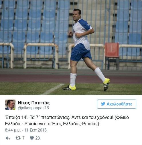Ο κ. Παππάς αγωνίστηκε για 14 λεπτά στο φιλικό μεταξύ προσωπικοτήτων και βετεράνων Ελλάδας-Ρωσίας, στο πλαίσιο του έτους φιλίας των δύο χωρών και στο περιθώριο της ΔΕΘ.