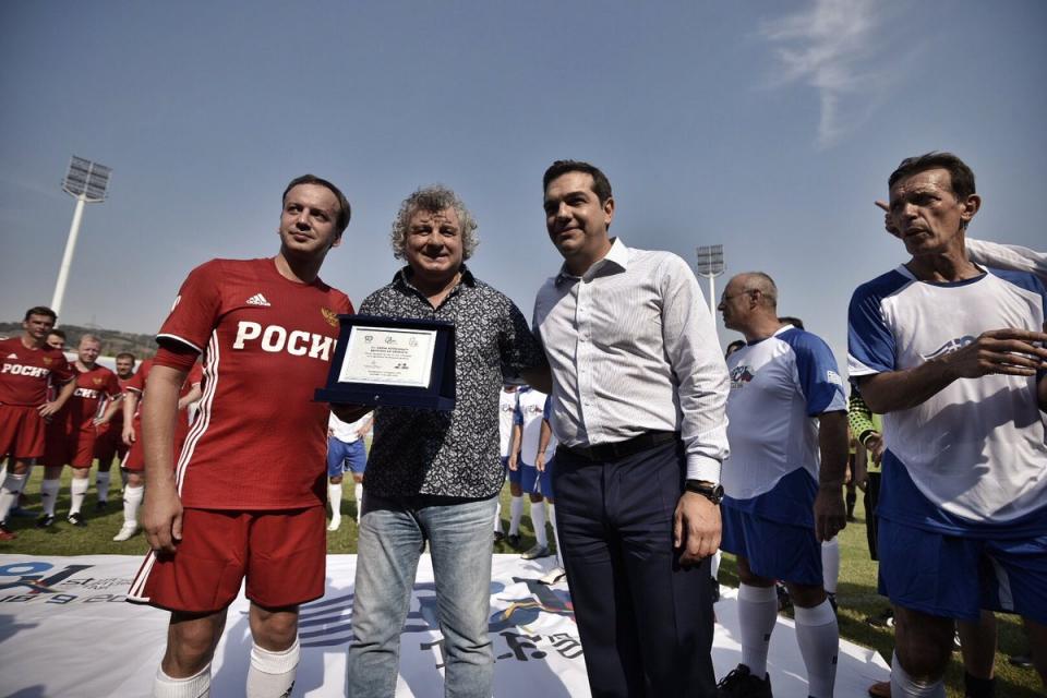 Στο Καυτανζόγλειο Στάδιο της Θεσσαλονίκης βρέθηκε και ο Αλέξης Τσίπρας, ο οποίος παρακολούθησε τον φιλικό αγώνα. Πριν από την έναρξη του αγώνα βραβεύτηκαν δύο μεγάλοι ποδοσφαιριστές, ο Βασίλης Χατζηπαναγής και ο αρχηγός της ρωσικής ομάδας. Στον αγώνα έπαιξαν και ο Θοδωρής Ζαγοράκης, ο υφυπουργός Εξωτερικών Δημήτρης Μάρδας και ο Ρώσος αναπληρωτής πρωθυπουργός, Αρκάντι Ντβορκόβιτς. Ο αγώνας διεξήχθη στο πλαίσιο της 81ης ΔΕΘ και των παράλληλων εκδηλώσεων της ρωσικής συμμετοχής.