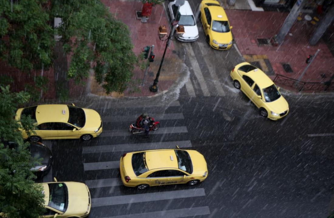 Μάλιστα το κέντρο της Αθήνας χτυπήθηκε από ένα δυνατό μπουρίνι με ισχυρή βροχή και χαλάζι ενώ βρίσκεται σε ισχύ το έκτακτο δελτίο καιρού.