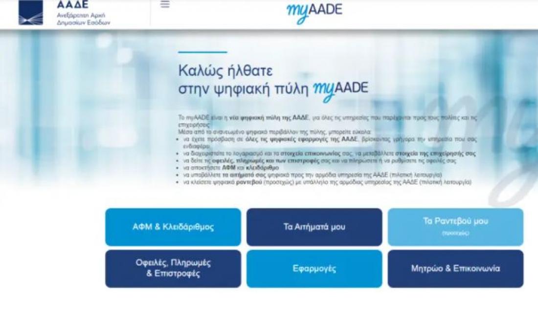Σε λειτουργία τέθηκε από σήμερα στο gov.gr η νέα ψηφιακή πύλη της Ανεξάρτητης Αρχής Δημοσίων Εσόδων, myaade.gov.gr.