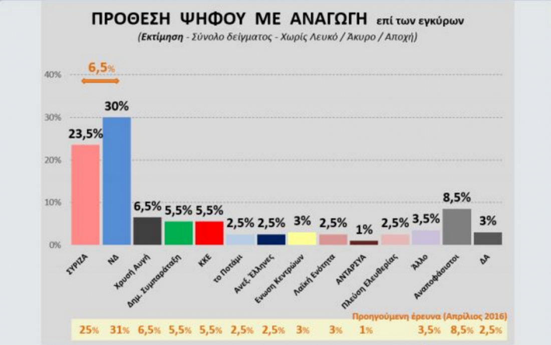 Στην πρόθεση ψήφου τα ποσοστά είναι τα εξής: