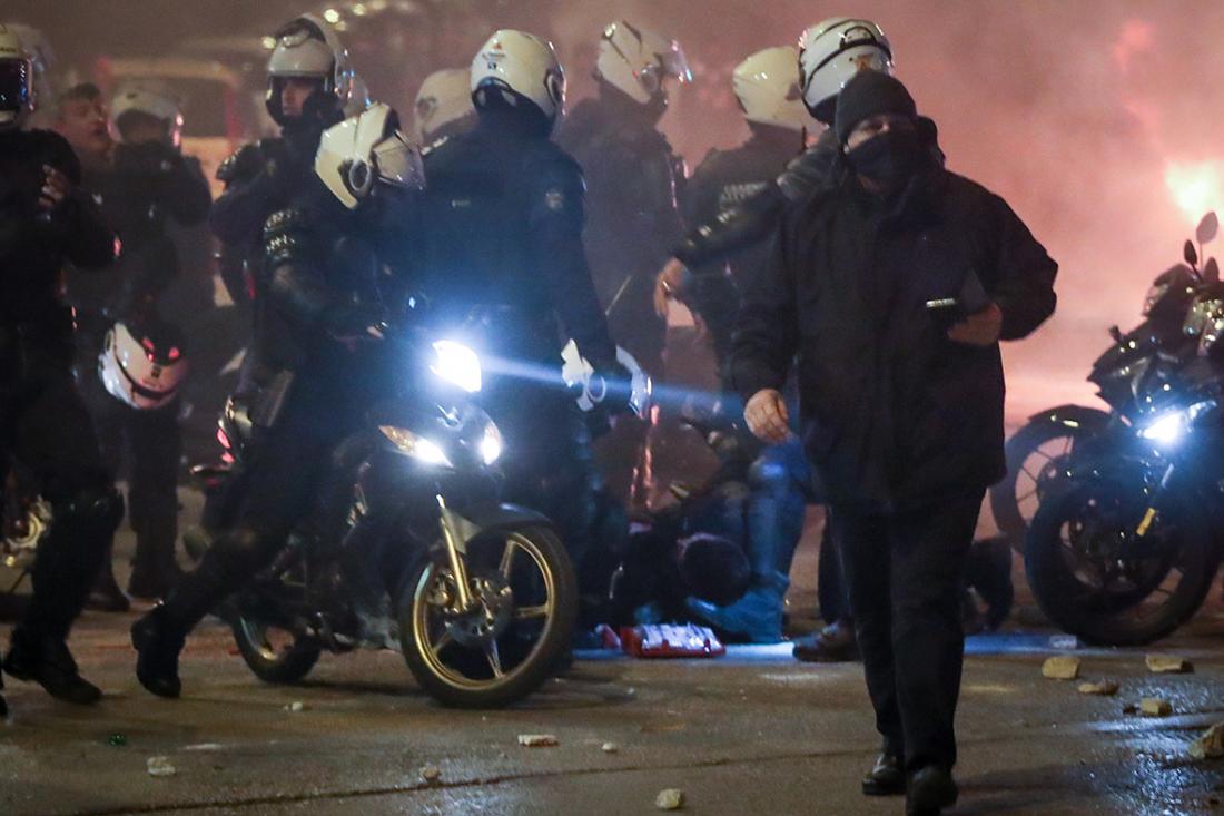 Σύμφωνα με τα μέχρι στιγμής στοιχεία στην πορεία, κατά της εκτιμήσεις της Αστυνομίας συμμετείχαν πάνω από 5.000 άτομα. Όταν έφθασαν στο Αστυνομικό Τμήμα μια ομάδα βγήκε από την πορεία και επιτέθηκε σε βάρος των ισχυρών αστυνομικών δυνάμεων που βρίσκονταν εκεί από νωρίς, πετώντας εναντίον τους μολότοφ, φωτοβολίδες πέτρες και άλλα αντικείμενα.