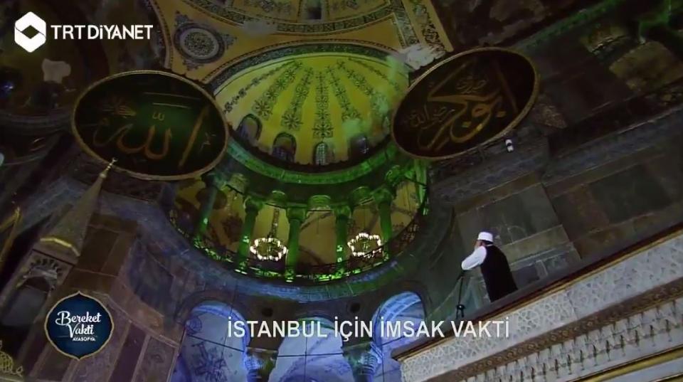Όπως αναφέρουν τα τουρκικά μέσα ενημέρωσης «η Αγιά Σοφιά αντήχησε στο κάλεσμα της πρωινής προσευχής από τον μουεζίνη μέσα από την Αγία Σοφία το "ορόσημο" του 6ου αιώνα της Κωνσταντινούπολης για πρώτη φορά μετά από 85 χρόνια το Σάββατο».