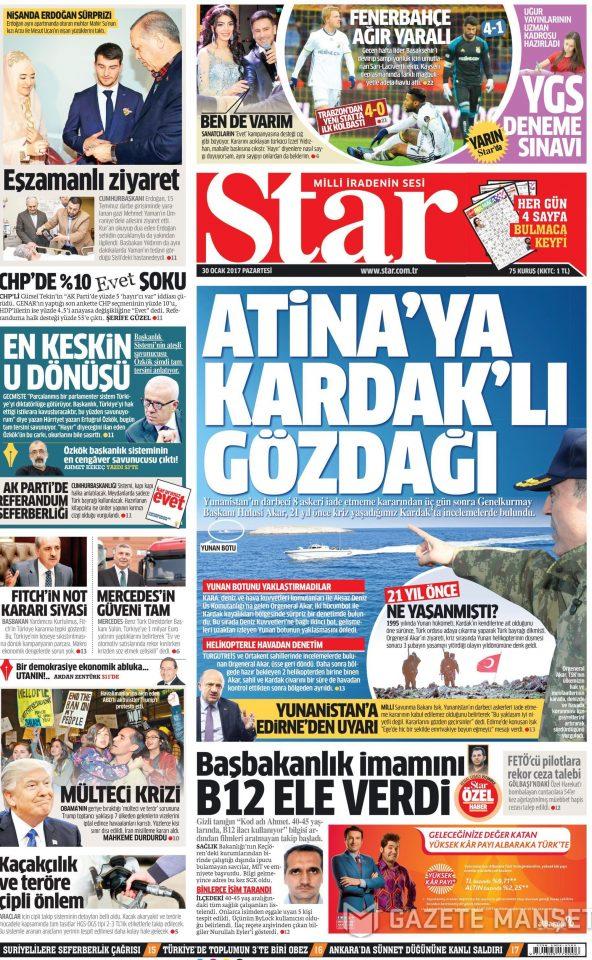 Η εφημερίδα Star σχολιάζει ότι η Ελλάδα πήρε το μήνυμα μέσω του αρχηγού των τουρκικών ενόπλων δυνάμεων. Αναφέρει: Μήνυμα στην Αθήνα με τα Καρντάκ (Ιμια) και συνεχίζει: «Μετά την απόφαση της Ελλάδος για την μη έκδοση των 8 πραξικοπηματιών ο Ακάρ επισκέφθηκε τα Καρντακ»