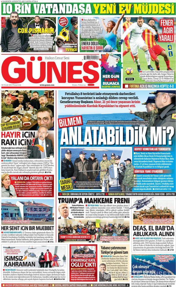 Στο ίδιο μήκος και η εφημερίδα GÜNEŞ με τίτλο: «Μπορέσαμε να σας το εξηγήσουμε» και αναφέρει: «Στην Ελλάδα που δεν επιστρέφει τους 8 τρομοκράτες δόθηκε μήνυμα στη γλώσσα που καταλαβαίνει».