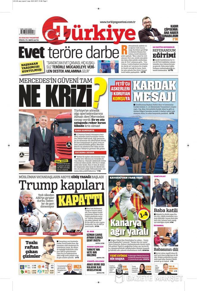 Η εφημερίδα TÜRKİYE έχει τίτλο στο πρωτοσέλιδό της Μήνυμα Καρντάκ (Ιμια) και επεξηγεί πως το μήνυμα είναι «Για τα μέλη της τρομοκρατικής οργάνωσης FETÖ τα οποία προστατεύει η γειτονική χώρα».