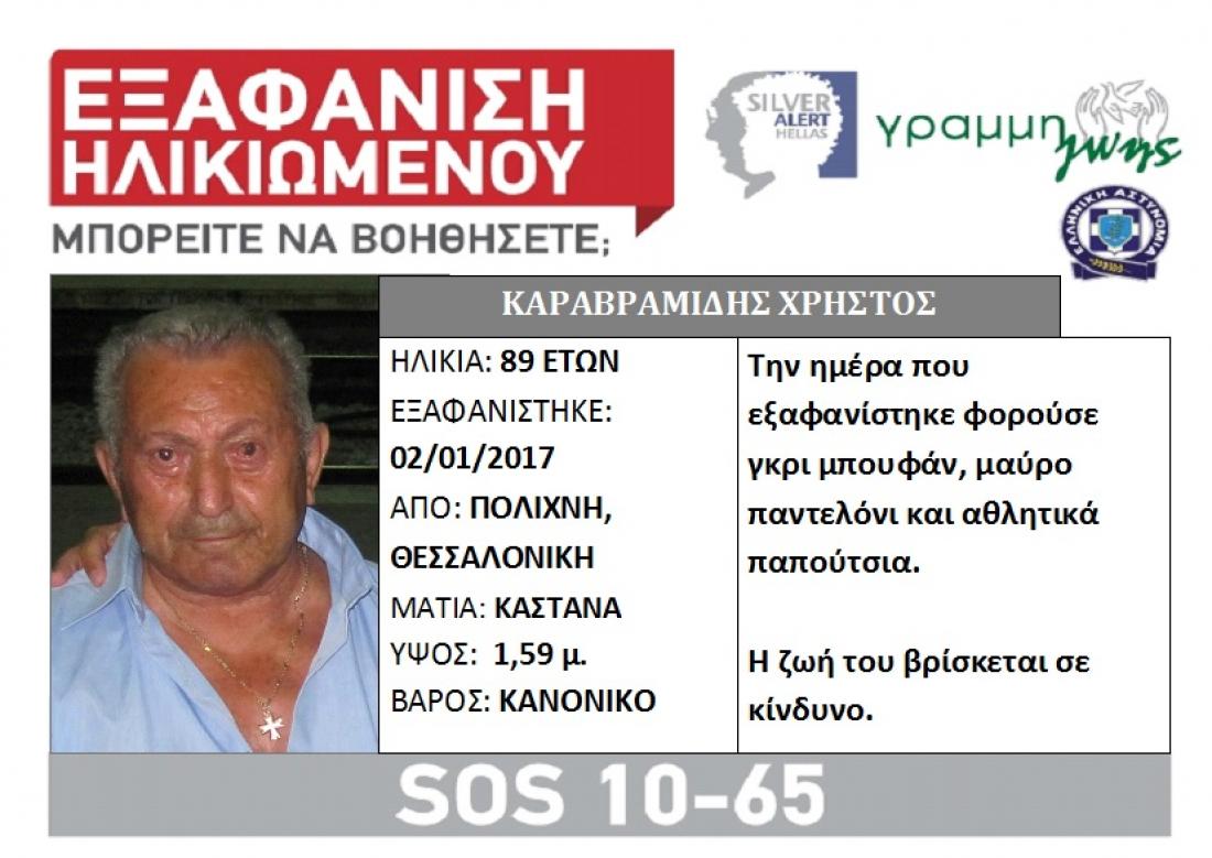 Νεκρός και σε προχωρημένη αποσύνθεση εντοπίστηκε σήμερα το μεσημέρι από περαστικό και σε χωράφι απέναντι από το Νοσοκομείο "Παπαγεωργίου", ο 89χρονος Χρήστος Καραβραμίδης, ο οποίος είχε εξαφανιστεί από τις 2 Ιανουαρίου από το σπίτι του στην Ευκαρπία Θεσσαλονίκης.