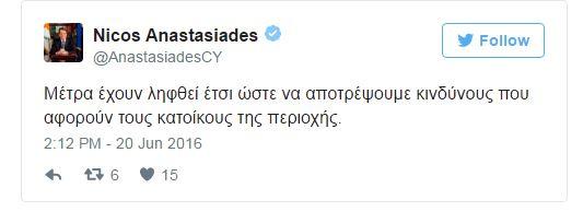 Ο κ. Αναστασιάδης έκανε και σχετική ανάρτηση στο twitter.