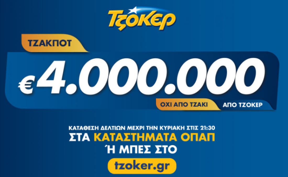 Νέο τζακ ποτ στο ΤΖΟΚΕΡ της Πέμπτης (4/7/2019): Δείτε εδώ τους τυχερούς αριθμούς
