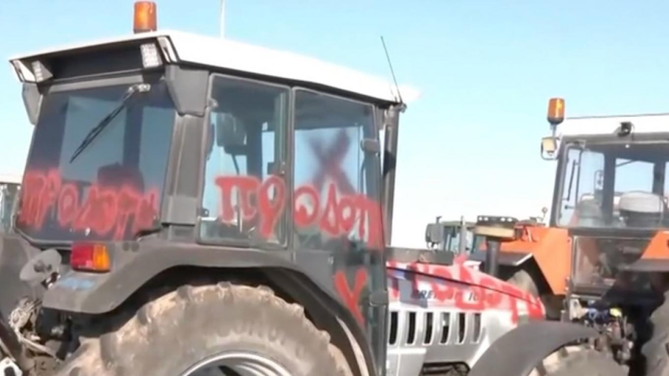 Σύμφωνα με πληροφορίες, άγνωστοι αφαίρεσαν τον αέρα από τα λάστιχα των δύο τρακτέρ, ενώ πάνω σε αυτά αναγράφηκε με κόκκινο και μπλε σπρέι η λέξη «προδότη».