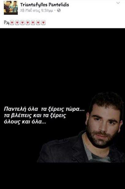 Μετά την έκρηξη της μητέρας του Παντελή Παντελίδη, Αθηνάς, ακολούθησε νέο post από τον αδελφό του αδικοχαμένου τραγουδιστή, Τριαντάφυλλο, ο οποίος με αινιγματικό τρόπο προσπαθεί και εκείνος με τον τρόπο του να δείξει πόσο πολύ ενοχλημένος είναι με τα όσα ακούγονται και γράφονται για τον Παντελή.