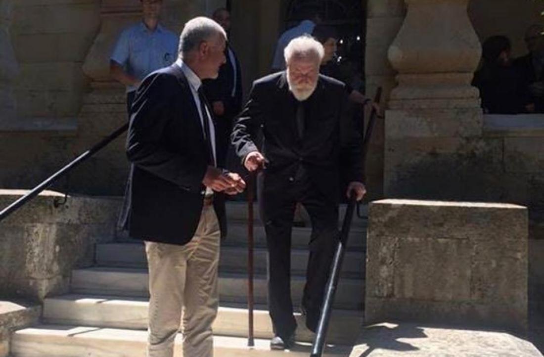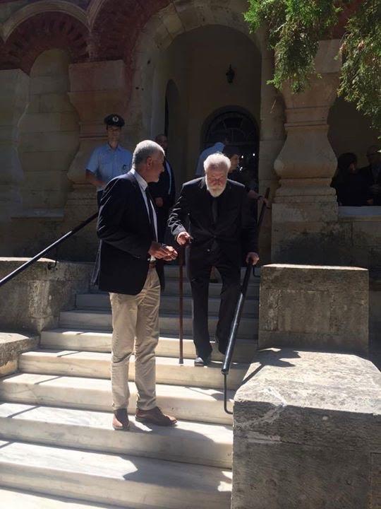 Σήμερα, λίγους μήνες πριν συμπληρώσει έναν αιώνα ζωής, προσήλθε, όρθιος, στον Ιερό Ναό Αγίας Μαγδαληνής, να αποτίσει φόρο τιμής και να πει το τελευταίο αντίο στον πρώην πρωθυπουργό.