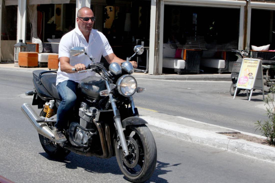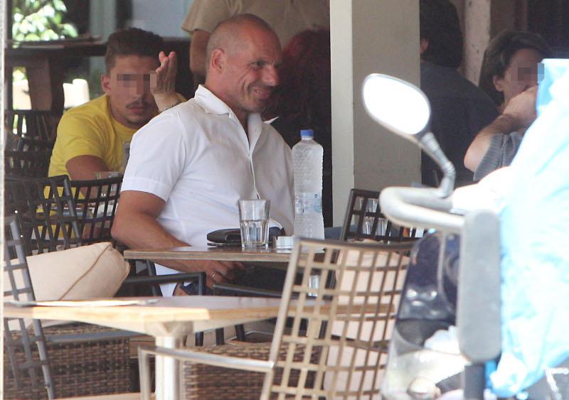 Με λευκό πουκάμισο, τζιν παντελόνι, αθλητικά παπούτσια και γυαλιά - καθρέφτες ο Γιάνης Βαρουφάκης εθεάθη χθες, 6 Σεπτεμβίου χαλαρός και μαυρισμένος να πίνει τον καφέ του σε γνωστή καφετέρια της περιοχής.