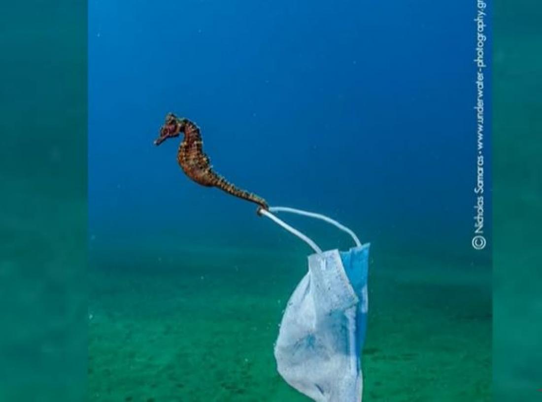 Ο ιππόκαμπος και η χειρουργική μάσκα στην Χαλκιδική