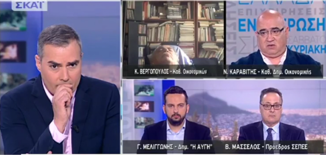 Δεν είχε πολύ «δράση»... φαίνεται αυτό το Σαββατοκύριακο η ομώνυμη εκπομπή του ΣΚΑΙ και ο καλεσμένος στο τηλεοπτικό παράθυρο ,καθηγητής οικονομικών Κώστας Βεργόπουλος είπε λίγο να...ξαποστάσει!