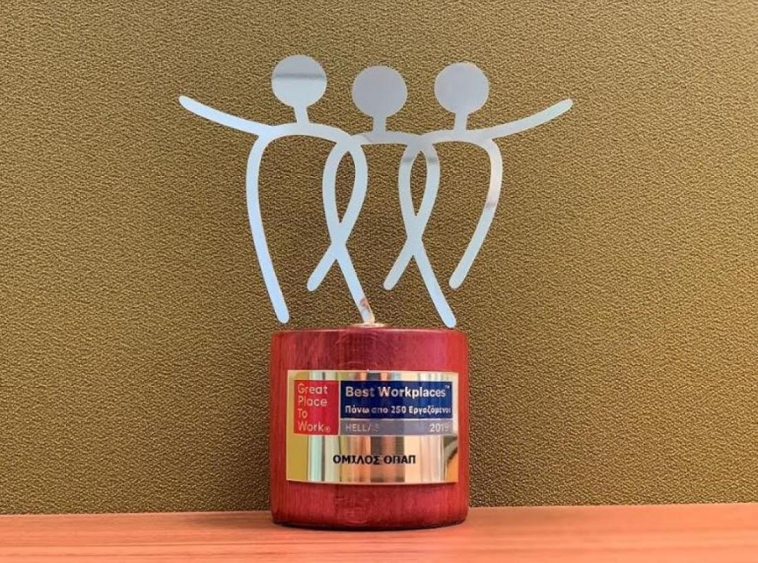 Ο ΟΠΑΠ αναδείχθηκε ως μια από τις δέκα μεγάλες επιχειρήσεις (με περισσότερους από 251 εργαζομένους) με το καλύτερο εργασιακό περιβάλλον στην Ελλάδα, στο πλαίσιο των βραβείων Best Workplaces 2019.