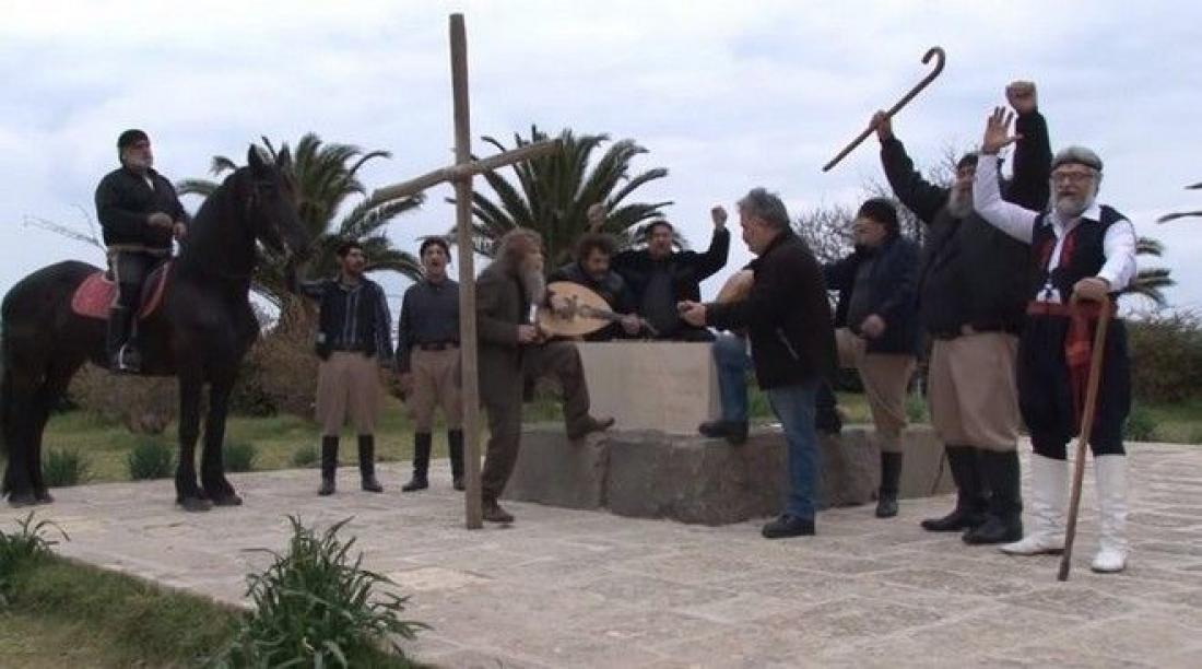 Ο Ψαραντώνης, από τις εμβληματικές μορφές της ελληνικής μουσικής, συνοδευόμενος από έφιππους Κρητικούς αλλά και από το γιο του Λάμπη Ξυλούρη, ύψωσε σταυρώ στον τάφο του Ν. Καζαντζάκη και από εκεί αφιέρωσε ένα τραγούδι στους Έλληνες ενόψει του συλλαλητηρίου της Αθήνας.