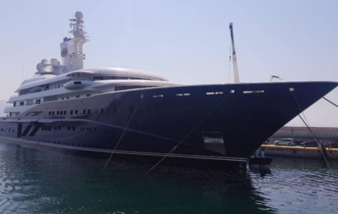 Η εντυπωσιακή θαλαμηγός «Αλ Μιρκάμπ» είναι μία από τις τρεις ακριβότερες στον κόσμο, έχει μήκος 135 μέτρα, διαθέτει δύο πισίνες, ελικοδρόμιο, τζακούζι, αίθουσα κινηματογράφου και δώδεκα σουίτες.