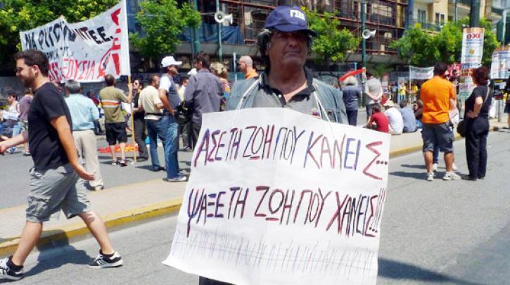 Τα χρόνια της οικονομικής κρίσης εμφανιζόταν με πλακάτ και πολιτικά συνθήματα. Λόγος καταγγελτικός, διαμαρτυρόμενος και παράλληλα ευρηματικός και χιουμοριστικός.