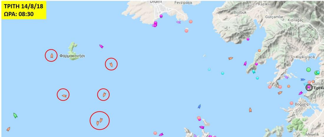 Ο χάρτης που δημοσιεύουμε αποτυπώνει την κατάσταση που επικρατεί γύρω από το Φαρμακονήσι.