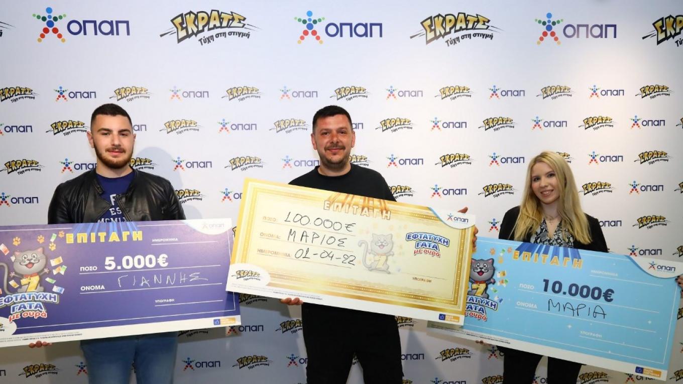 Γιάννης Α., Νικητής 5.000 ευρώ του ΣΚΡΑΤΣ 2η ευκαιρία, Μάριος T., Νικητής 100.000 ευρώ του ΣΚΡΑΤΣ 2η ευκαιρία, Μαρία Λ., Νικήτρια 10.000 ευρώ του ΣΚΡΑΤΣ 2η ευκαιρία