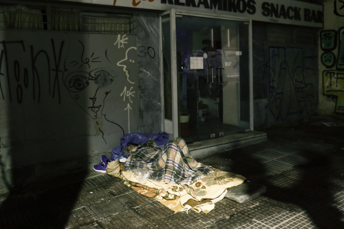 Αλλοτε αντικρίζεις μόνο τα απλωμένα χαρτόκουτα και τις κουβέρτες κι άλλοτε τους ίδιους τους ανθρώπους κουλουριασμένους και σκεπασμένους, προσπαθώντας να κοιμηθούν, αψηφώντας το κρύο του Δεκέμβρη. Έχουν μάθει παρά τον θόρυβο του κέντρου να βρίσκουν την ηρεμία τους, τον χώρο τους και να απολαμβάνουν τη γαλήνη που δίνει ο ύπνος, τους κάνει να ξεχνούν και να παραμερίζουν τα προβλήματά τους.