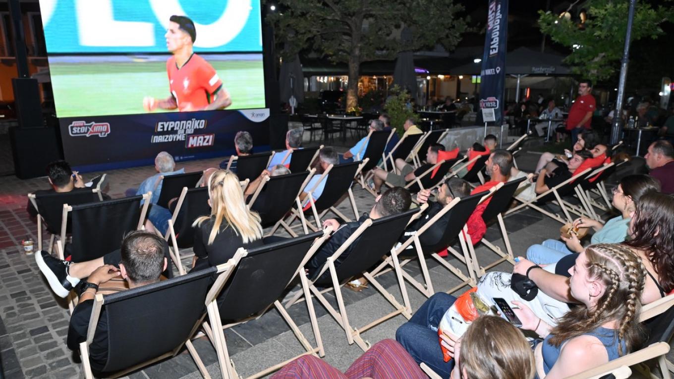 Προκειμένου, μάλιστα, να θυμούνται τις στιγμές που έζησαν στην ποδοσφαιρική βραδιά του Pamestoixima.gr, οι κάτοικοι της περιοχής έβγαλαν και αναμνηστικές φωτογραφίες σε ειδικό photo booth στα χρώματα του EURO.